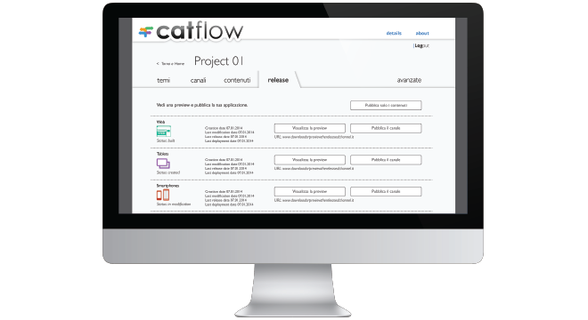 CatFlow è un innovativo sistema di pubblicazione, orientato alla promozione e alla vendita dei prodotti: una soluzione veloce ed intuitiva per creare app, cataloghi e brochure per ogni device mobile, per il web e per la carta.